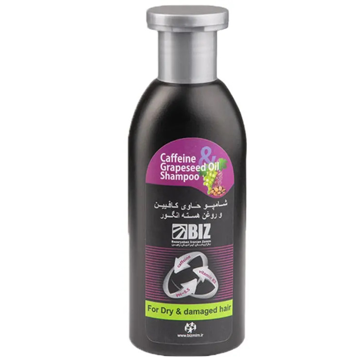 شامپو کافئین و روغن هسته انگور بیز به ثابت موندن رنگ مو کمک میکنه و خاصیت ضد ریزشی داره. اگه موهای خشک و آسیب دیده ای دارید، گزینه مناسبی هستش و برای ترمیم مو موثره.